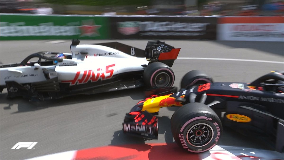Grosjean and Verstappen touch at the hairpin - no damage done